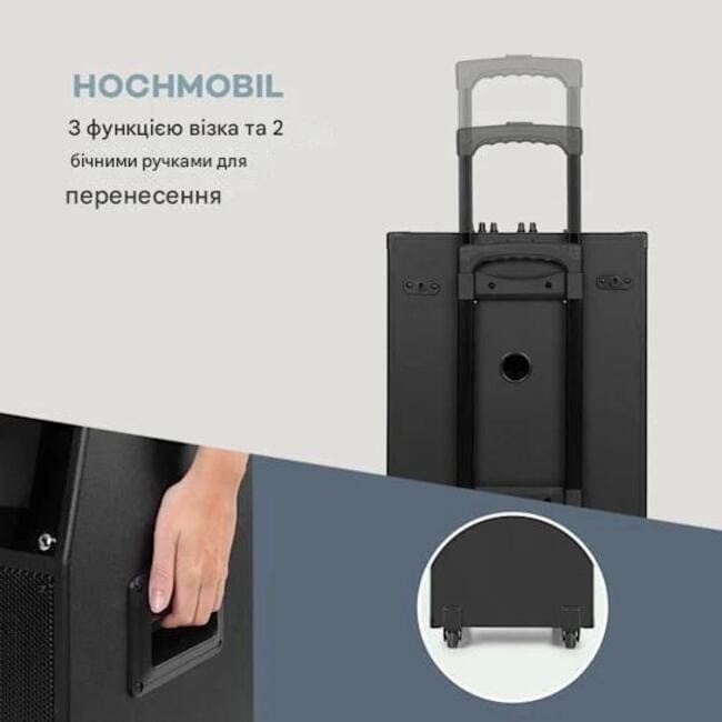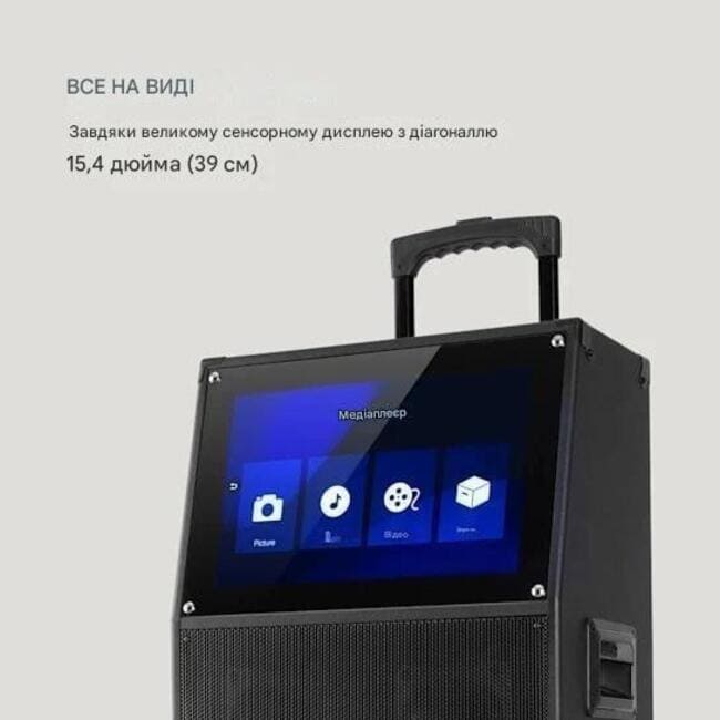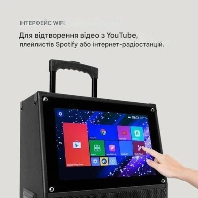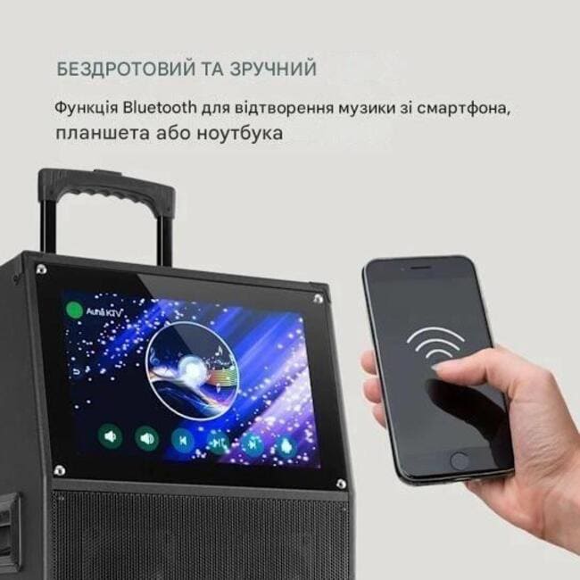 Завдяки інтегрованому інтерфейсу Wi-Fi і сенсорному дисплею 15,4" (39 см) численні браузери та додатки можна відтворювати як візуально, так і аудіо за допомогою KTVauna Proкараоке-системи Караоке-система auna Pro KTV також ідеально обладнана для мобільного використання на заходах : міцний корпус витримує значне навантаження, а подовжена ручка візка дозволяє комфортно тягнути систему навіть високим діджеям. Потужна батарея 12 В/12 А забезпечує безперервну роботу від 3 до 5 годин, а кабель живлення, що входить у комплект, дозволяє легко підключити пристрій до мережі. Повноцінний пульт дистанційного керування дозволяє керувати навіть на відстані.
