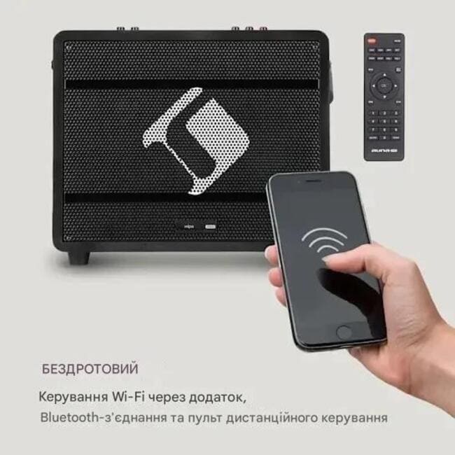 Вечірка може розпочатися де завгодно. Караоке-система auna Pro Spin 8 надає ідеальні послуги: завдяки 8-дюймовому сабвуферу та 3-дюймовому високочастотному динаміку вона забезпечує високоякісне та збалансоване звучання навколо. Ви можете використовувати це з цілою низкою музичних джерел. Через Wi-Fi ви маєте доступ не тільки до YouTube, Spotify або різних інтернет-радіостанцій, але й до музичних баз даних у вашій локальній мережі. Ви також можете імпортувати самостійно створені альбоми MP3 через порт USB і пристрій читання карт TF і під'єднуватися через бездротову мережу до смартфона або планшета через Bluetooth. Додаткові пристрої HiFi або телевізор можна під'єднати через порти HDMI та AUX. Інтегроване FM-радіо доповнює мультимедійне пропонування. Все, що вам потрібно зробити, це увімкнути два бездротові мікрофони UHF, і караоке-шоу почнеться. Завдяки міцному дерев'яному корпусу, вбудованому акумулятору 7,4 В/ 4000 мАгод і м'якому ременю для перенесення ви повністю мобільні. А вбудовані світлодіодні ліхтарі танцюють у такт музиці та створюють потрібну атмосферу. Повноцінний пульт дистанційного керування дає змогу керувати навіть на відстані.
