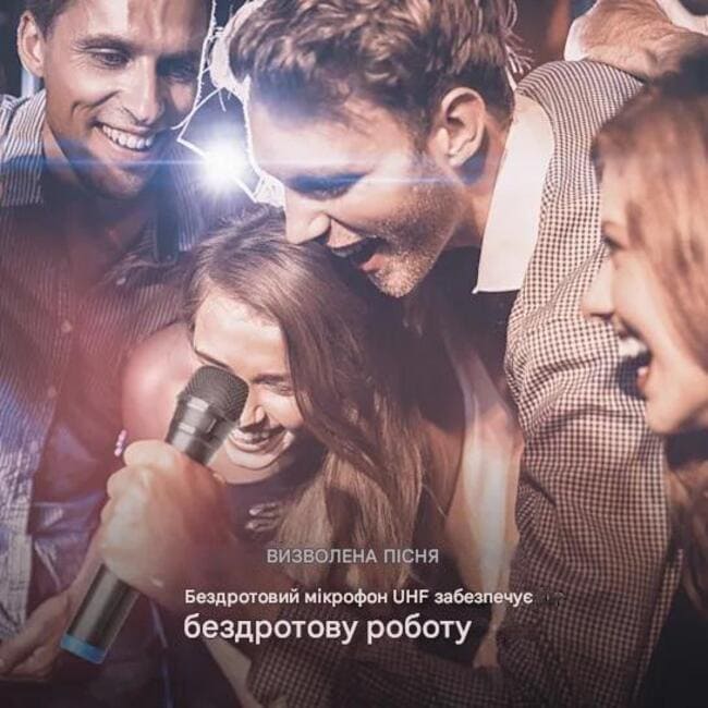 - Свобода рухів: бездротовий УВЧ мікрофон забезпечує свободу рухів під час співу