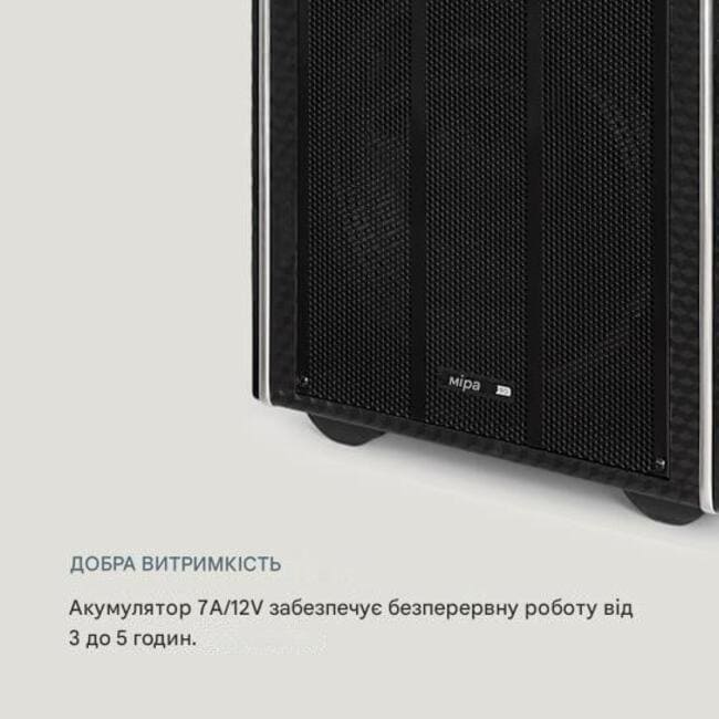 - живлення: 100 - 240 В ~ | 50/60 Гц (мережа) або 7 А 12 В від акумулятора