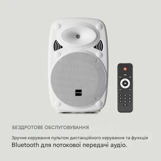 - Універсальність: мобільна акустична система для вечірок, караоке-вечерів та різноманітних презентацій.