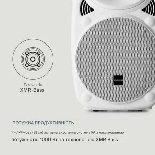 - Повна потужність: сабвуфер 15 дюймів загальною потужністю 1000 Вт.