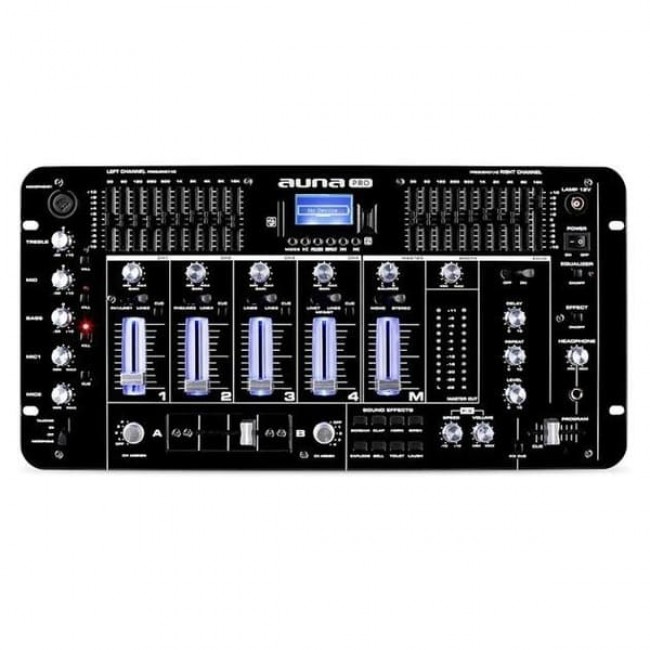 Auna Pro Kemistry 3 — це потужний 4-канальний DJ-мікшер . На додаток до величезної різноманітності підключень, дизайну, сумісного зі стійкою, і технічних удосконалень, таких як Bluetooth, USB і SD, пристрій виділяється чітким компонуванням із чорним інтерфейсом користувача.