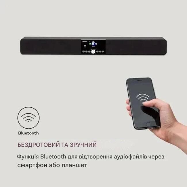 Саундбар із потужністю 2 x 10 Вт RMS для двох стереодинаміків і 20 Вт RMS для сабвуфера ідеально підходить для програм домашнього кінотеатру та потокової передачі музики завдяки численним варіантам підключення. Завдяки оптичному та коаксіальному входу звукову панель auna можна підключити до телевізора без будь-яких втрат, а інтернет-радіо відтворює понад 27 000 міжнародних станцій, відсортованих за країною, жанром і популярністю через Wi-Fi. Радіотюнер DAB+/FM також піклується про цифровий і аналоговий прийом усіх місцевих радіостанцій.