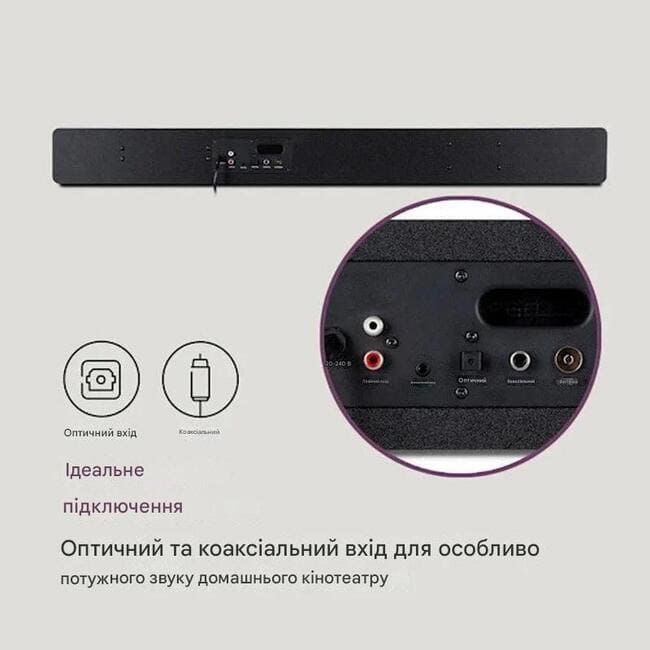 - Підключення: USB-порт, оптичний вхід, коаксіальний вхід, 3,5 мм вхід AUX, лінійний вхід RCA, підключення антени