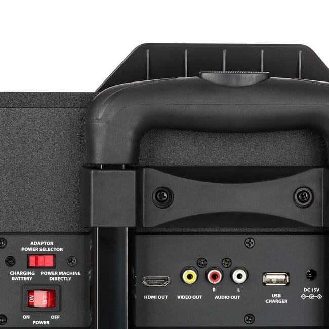 Для великих вечірок можна підключити через HDMI або відеовихід до монітора чи телевізора. Караоке-плеєр також можна інтегрувати в існуючу аудіосистему Hi-Fi через лінійний вихід. Додатковий роз'єм 6,3 мм дозволяє також підключати музичні інструменти, такі як гітари або клавішні.