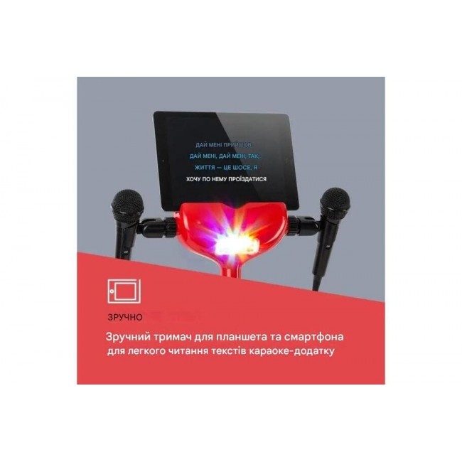 - Практичний: зручний тримач для планшета або смартфона для зручного читання текстів додатків для караоке