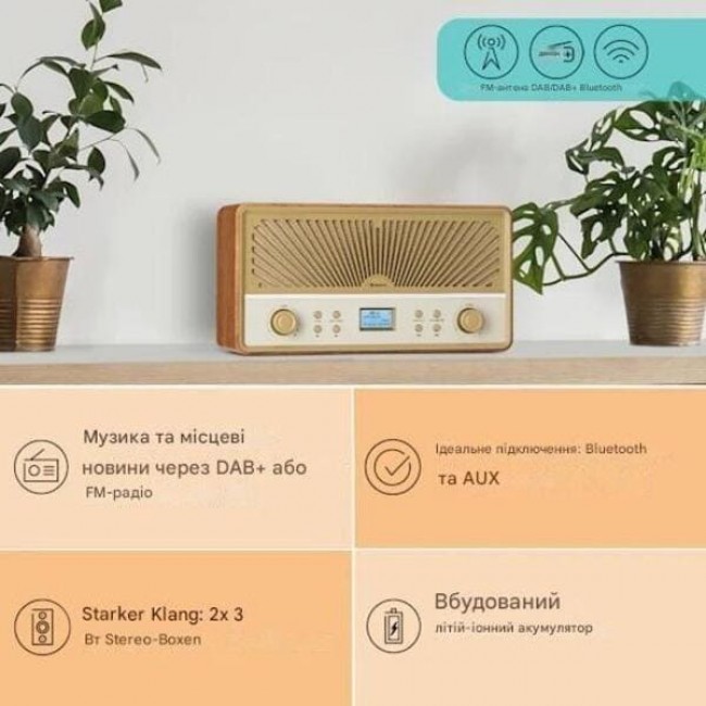 - Світовий приймач: радіо DAB/FM із задньою антеною