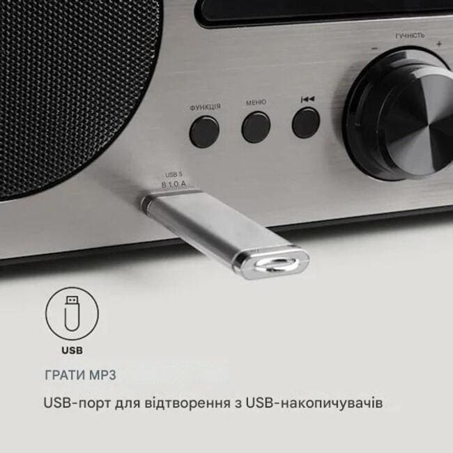 - CD-плеєр і USB-порт для відтворення MP3 і WMA