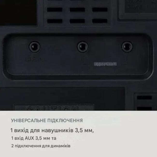 - З'єднання: 1x 3,5-мм вихід для навушників, 1x 3,5-мм вхід AUX, 2 порти для динаміків