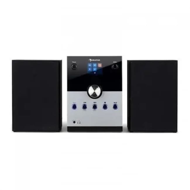 Мікро стереосистема auna MC-30 DAB є багатофункціональним пристроєм «все в одному», який займає дуже мало місця і при цьому чудово звучить. Завдяки вбудованому цифровому радіотюнеру DAB+ та FM у вас є величезний вибір станцій, програвач компакт-дисків з верхнім завантаженням читає компакт-диски MP3 на додаток до стандартних компакт-дисків, CD-R, CD-RW. Для бездротового підключення компактна стереосистема MC-30 DAB пропонує вбудований інтерфейс Bluetooth, який швидко та легко підключається до відповідних пристроїв для відтворення їхнього мультимедійного контенту. Ви також можете використовувати лінійний вхід на задній панелі, що легко розширює аудіосистему додатковим аудіоконтентом із зовнішніх пристроїв. Стереосистема управляється з передньої панелі керування або зручно за допомогою пульта дистанційного керування. Багато корисної інформації, наприклад про радіостанції або музичний твор, що відтворюється, відображається на кольоровому і легко впізнаваному дисплеї HCC. Дві компактні стереосистеми, кожна із середньоквадратичною потужністю 3 Вт, характеризуються динамічною звуковою картиною, а вихід на навушники дозволяє насолоджуватися музикою в тиші.