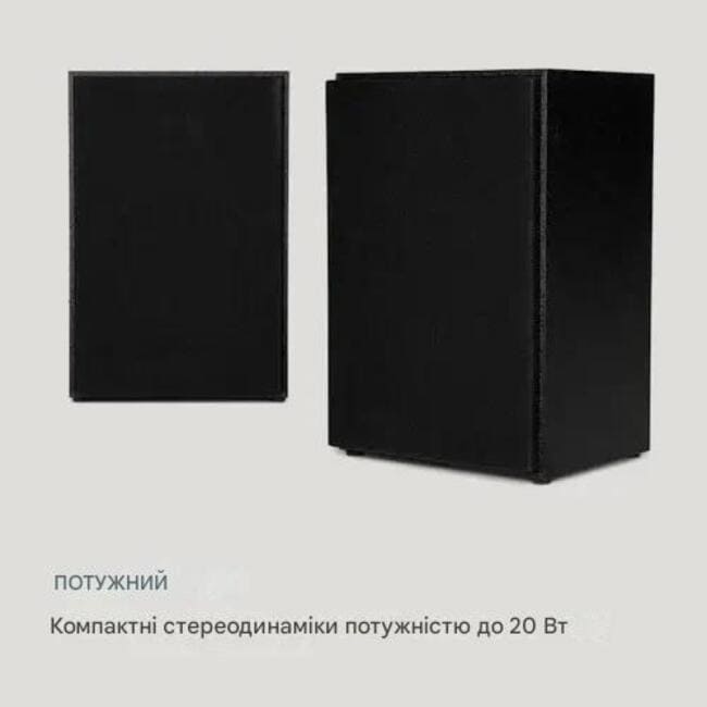 - Потужний: компактні 2-смугові динаміки з фазоінвертором на підставці