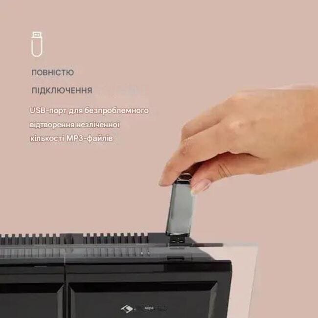 - Повністю підключається: порт USB для безпроблемного відтворення незліченної кількості MP3
