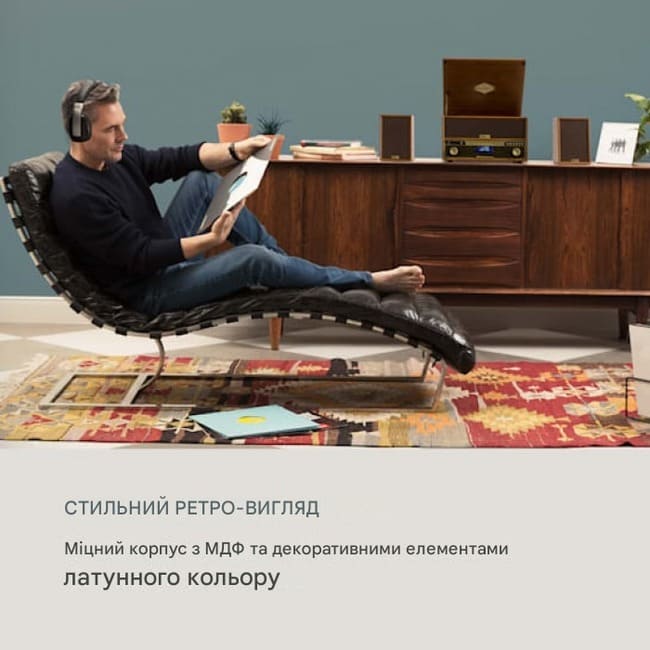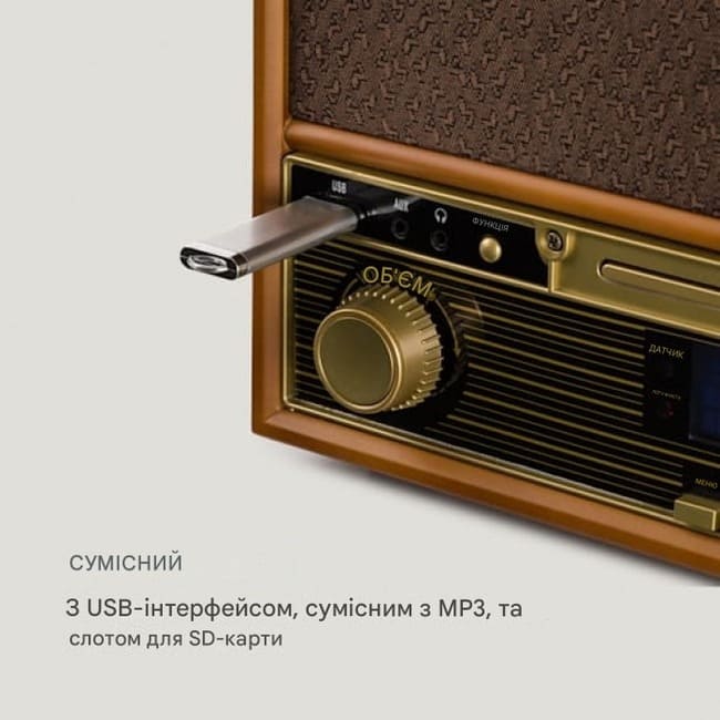 - Універсальний: із програвачем записів, програвачем компакт-дисків, касетною декою, FM-радіотюнером і стереодинаміками