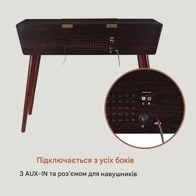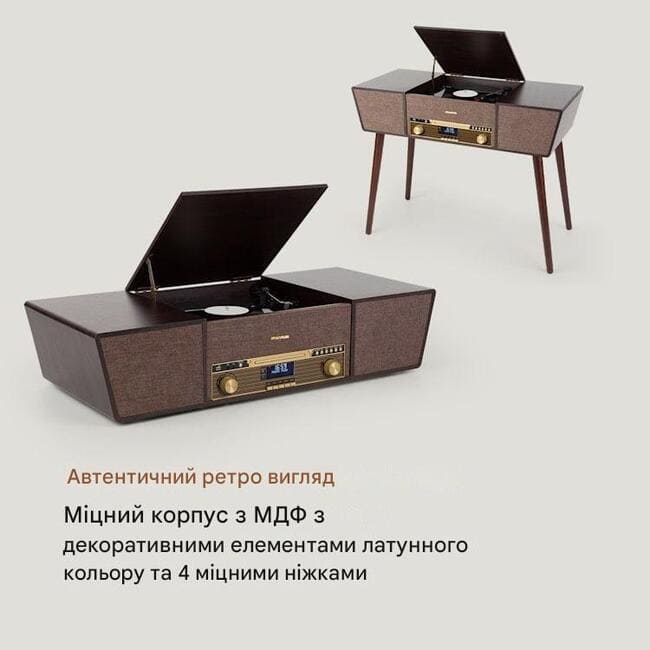Витончений ретро-корпус із міцного МДФ із 4 знімними ніжками робить ретро-програвач Belle Epoque 1912 від auna об’єктом різноманітного дизайну.