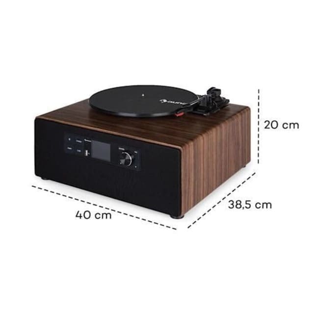 Весь світ радіо може поміститися в auna Connect Vinyl Cube: завдяки повному набору інтернет-радіо, DAB+ та FM-радіо на вибір пропонується до 10 000 радіостанцій на будь-який радіоаматорський смак. Крім інтелектуального радіо, акустичним серцем системи, безперечно, є верхній програвач. Тут вініл з 33, 45 або 78 обертами легко знайдуть сучасний пристрій відтворення і дозволять ожити звучання популярної платівки. Система також має вбудований Wi-Fi, а також порт USB та вхід AUX, які можна використовувати для відтворення незліченної кількості MP3-файлів та аудіофайлів. Звичайно, є функція бездротового Bluetooth. Connect Vinyl Cube забезпечує надійну потокову передачу звуку через смартфон, планшет чи ноутбук. Управління також неймовірно просте. Всі функції можна використовувати безпосередньо на пристрої, за допомогою пульта дистанційного керування, або через додаток AirMusic на смартфоні або планшеті. Щоб ви точно знали, що робите, система оснащена чітким кольоровим дисплеєм TFT з діагоналлю 2,4 дюйма і технологією відображення HCC . Він не тільки полегшує керування, а й відображає тексти радіоінформації, музичні треки, а також час годинника або будильника.