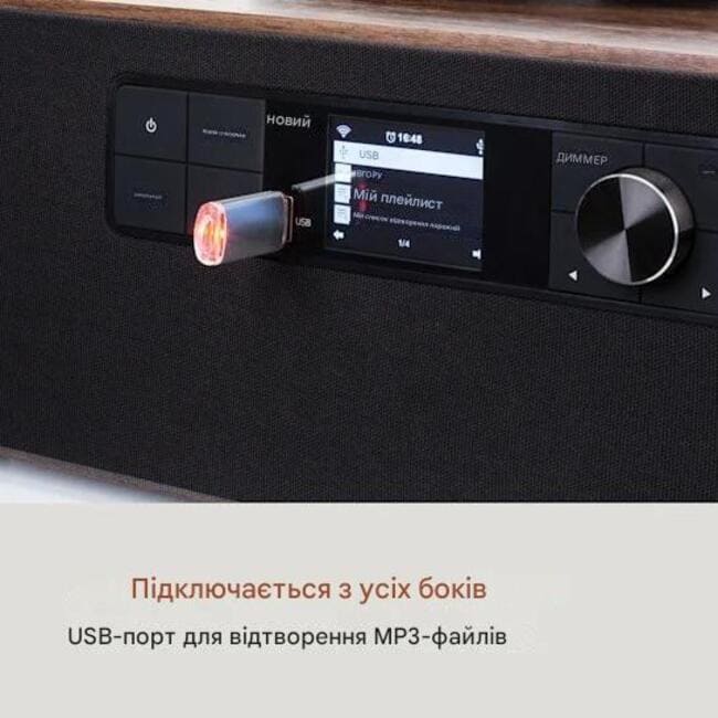 - Сучасна класика: потужний програвач з розумним радіо, пультом дистанційного керування та вбудованими динаміками.