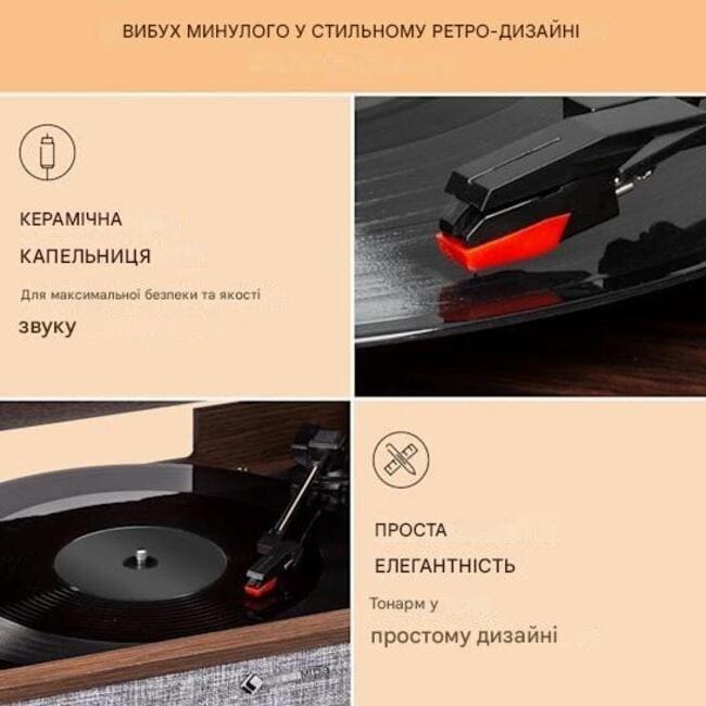 - Швидкість відтворення програвача: 33, 45 і 78 обертів за хвилину