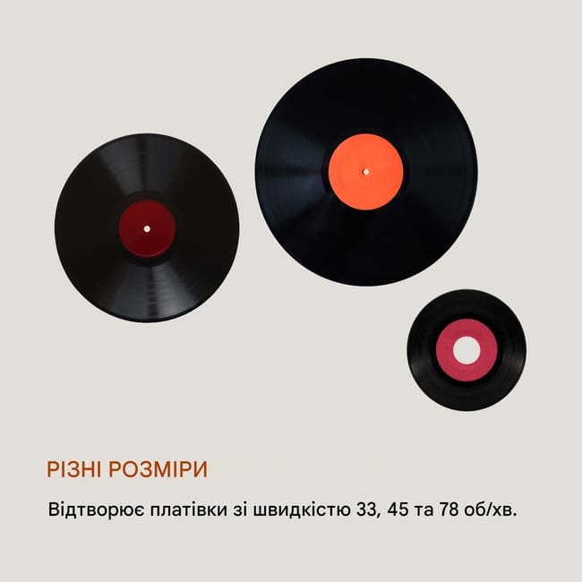 - Підтримувані швидкості відтворення: 33, 45,78 об./хв
