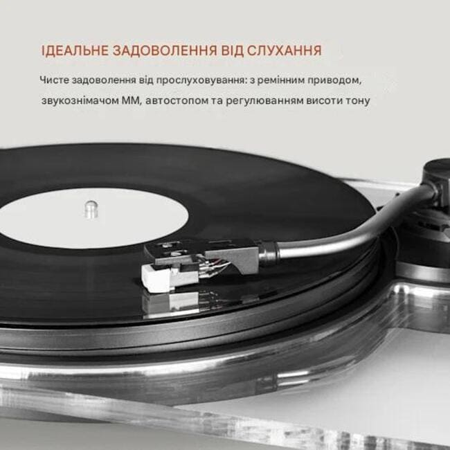 - Яскравий дизайн: програвач із корпусом з акрилового скла