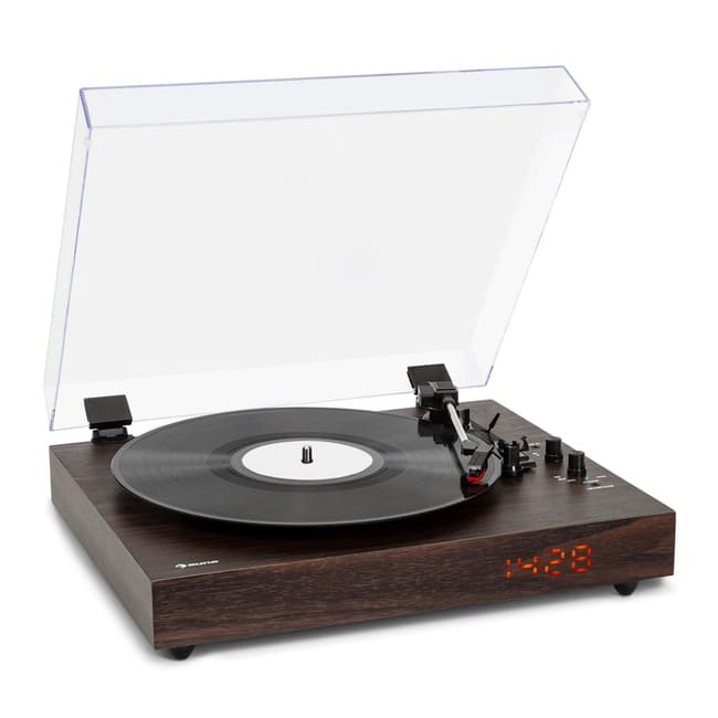 Відчуття класичної музики для поціновувачів: стильний, елегантний і з неповторним звуком, програвач auna TT-Classic Chrono видає чудові звуки з вінілових дисків. Вбудовані стереодинаміки практично непомітні, що дозволяє відразу використовувати вертушку . На додаток до класичного відтворення звуку за допомогою голки, TT-Classic Chrono від auna пропонує вам найсучасніші технології, які змушують кожне музичне серце битися швидше. Практичний світлодіодний годинник висвітлює його корпус, ніби з невидимого.