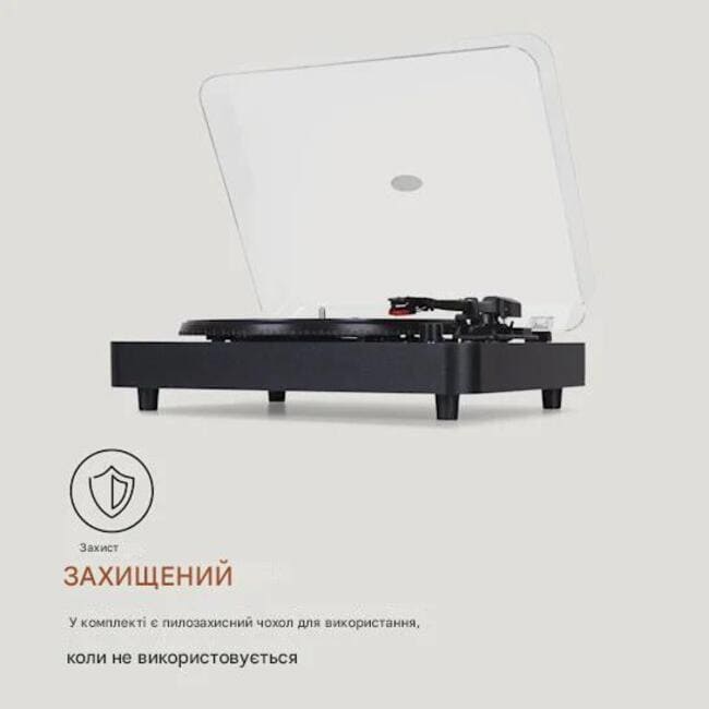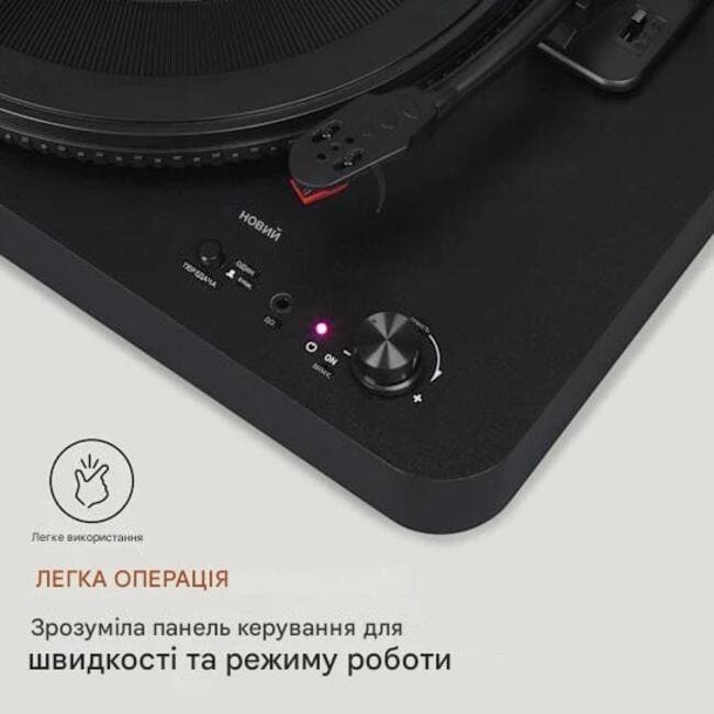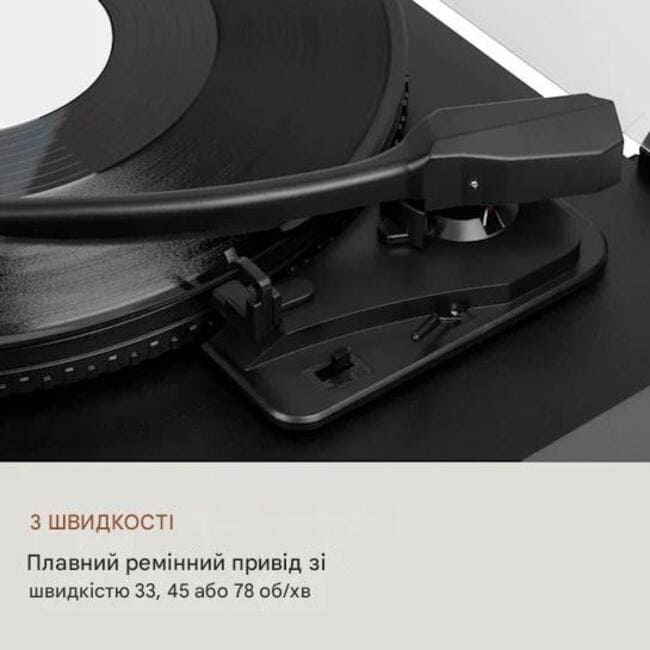 - 3 швидкості: плавна ремінна передача з 33, 45 або 78 об/хв<