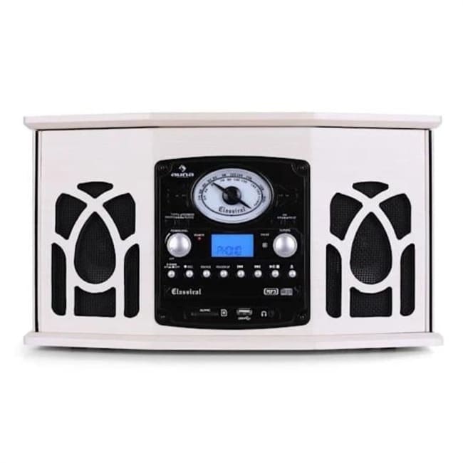 - FM/MW-радіо з ручним тюнером і частотним дисплеєм у ретродизайні