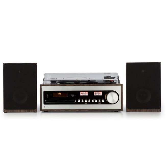 Серцем міністереосистеми є вертушка з ремінним приводом і трьома швидкостями 33, 45 і 78 обертів на хвилину, прихована під захисною кришкою, яка разом із програвачем компакт-дисків із підтримкою MP3 повертає додаткові круги для виконання вашого музичного твору. побажання. Крім того, Oxford SE має радіотюнер FM/DAB+, який, крім місцевих сигналів, також приймає цифрові станції з високою якістю звуку й без перешкод. Обладнана 2 окремими динаміками з максимальною вихідною потужністю 20 Вт, міністереосистема вражає як дуже компактне повне Hi-Fi рішення, яке, крім іншого, ідеально підходить для житлових приміщень з обмеженим простором. Вхід AUX і роз'єм для навушників також додають інші корисні компоненти міністереосистеми.