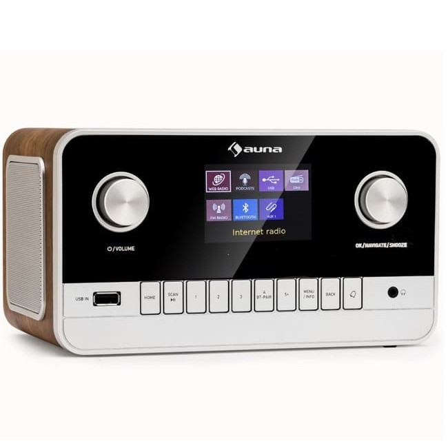 На щастя, без проводів і дуже розумно: інтернет-радіо auna Connect 100 MKII пропонує необмежений прийом радіо по всьому світу завдяки доступу до вашої домашньої мережі WLAN. Музичне натхнення та світові новини можна знайти тут одним натисканням кнопки. Крім того, це також справжній мережевий програвач , оскільки через Connect 100 MKII ви можете транслювати свою цифрову музичну колекцію прямо з комп’ютера, планшета чи смартфона. Вбудований інтерфейс Bluetooth дозволяє безпосередньо сполучати auna Connect 100 MKII з іншими музичними джерелами, такими як смартфони або планшети, а порт USB на задній панелі дозволяє швидко і легко завантажувати музичні треки MP3. Однак на задній панелі пристрою також є класичний AUX вхід для підключення зовнішніх MP3-плеєрів. Два повнодіапазонних бічних динаміка створюють дуже динамічне звукове зображення з потужністю 2 x 5 Вт RMS, яке можна посилити через вихід AUX за допомогою зовнішнього обладнання Hi-Fi або об’ємного звуку та збагатити завдяки функції еквалайзера.