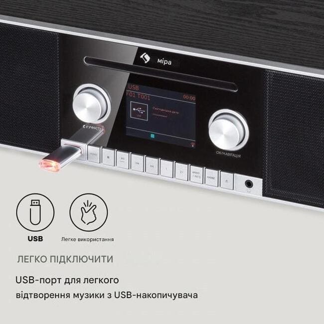 - USB-порт для зручного відтворення музики з USB-накопичувача.