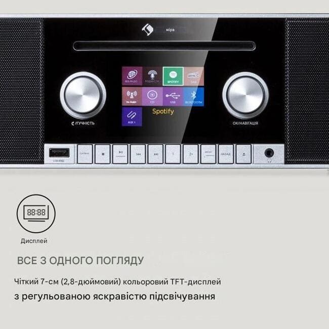 - Інтернет-радіо з тюнером DAB/DAB+ та приймачем FM RDS.