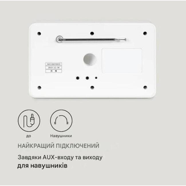 Модель підтримує сучасні формати цифрового мовлення DAB/DAB+, FM з RDS та класичне аналогове підключення через AUX. Це робить пристрій універсальним рішенням для дому, офісу або спальні.