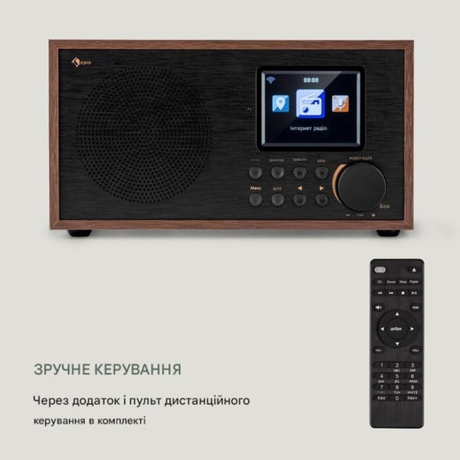 Інтернет-радіо повністю управляється з передньої панелі керування, зручно за допомогою пульта дистанційного керування. або з додатком Air Music Control.