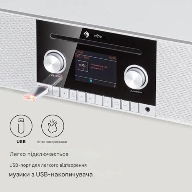 - Легке підключення: порт USB для легкого відтворення музики з USB-накопичувача