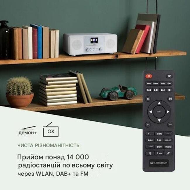 - Чисте різноманіття: прийом понад 14 000 радіостанцій у всьому світі через WLAN, DAB+ і FM