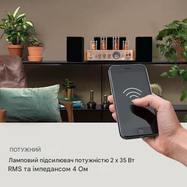 - Потужний: ламповий підсилювач із 2 x 35 Вт RMS і опором 4 Ом