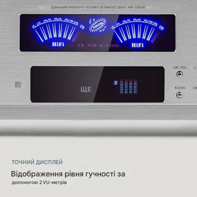 - Точне відображення: відображення рівня звуку за допомогою 2 вимірювачів VU
