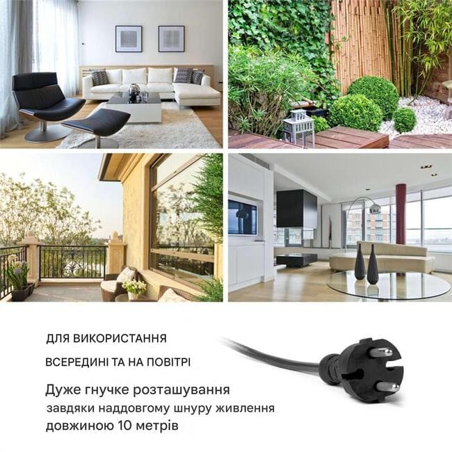 - Для використання у приміщенні та на вулиці: особливо гнучкий з подовженим шнуром живлення