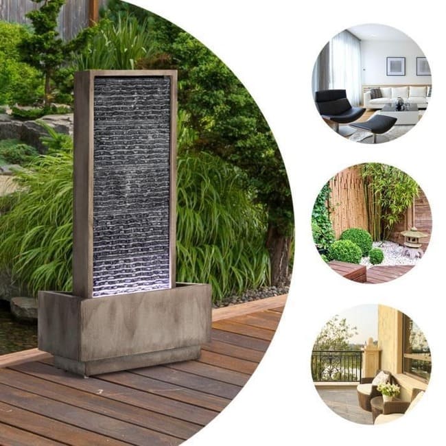 З ніжним дзюрчанням декоративного фонтану Blumfeldt Imperia відпочинок стає ще прекраснішим. М’яко підсвічена світлодіодною стрічкою, вода постійним потоком стікає по площі каналу 35 x 75 см, забезпечуючи таким чином медитативний релакс. Водний елемент забезпечує додаткову візуальну насолоду завдяки своїй задній стінці, яка виглядає як складені шиферні панелі. Imperia радує око та вухо. Він не тільки надзвичайно міцний і стійкий до атмосферних впливів, виготовлений з металу, але також повністю оцинкований: він ідеально вписується в різні середовища, не іржавіючи та не тьмяніючи. Щоб вода ніколи не вичерпалася, її постійну циркуляцію підтримує насос потужністю 10 Вт. Ніжно одурманюючий, він має надзвичайно медитативний ефект і освіжає оточення. Завдяки наддовгому кабелю довжиною 10 м водяний елемент Blumfeldt Imperia можна розташувати надзвичайно вільно. Усі деталі стійкі до атмосферних впливів, тому їх можна залишати на вулиці навіть у погану погоду.