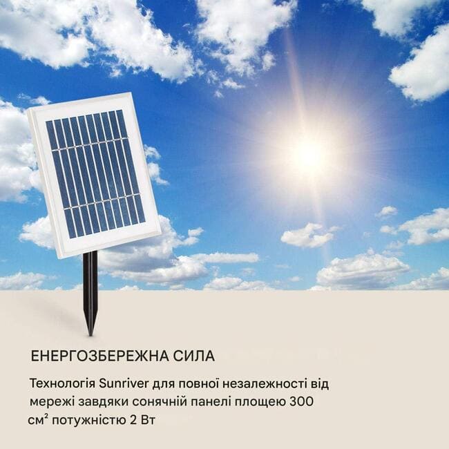 - Енергозберігаючий блок живлення: технологія Sunriver для повної незалежності від електромережі завдяки сонячній панелі площею 300 см² та потужності 2 Вт