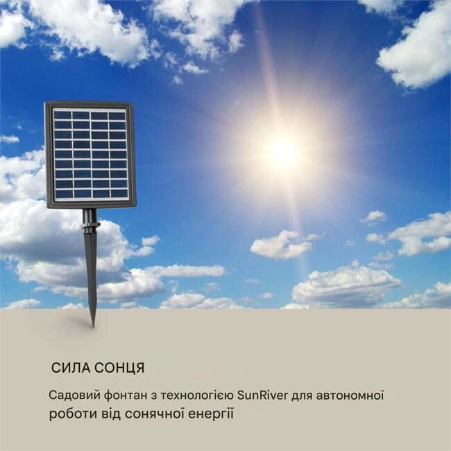 Технологія Sunriver в каскадному фонтані Blumfeldt Messina із сонячною панеллю 9 В/2,8 Вт і вбудованою літій-іонною батареєю гарантує, що фонтан працює повністю незалежно від електромережі. Завдяки акумулятору енергії можлива робота в нічну пору до 5 годин. Розслабтеся та насолоджуйтеся: вода плавним потоком ллється на чотири сходинки фонтана. А завдяки принципу роботи концепції LoopFlow , який не вимагає під'єднання води або доливання , потужний мінінасос постійно утримує залиту воду. Він забезпечує водний хід до 100 см і транспортує до 200 літрів води за годину.