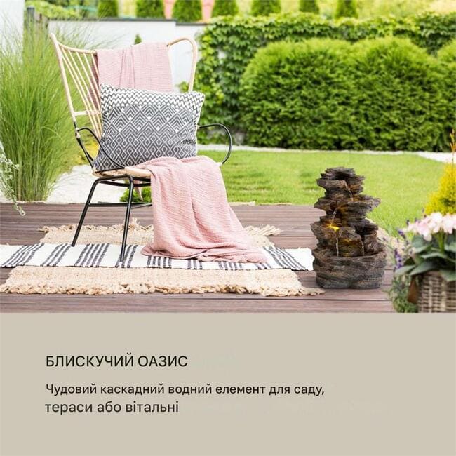 Дико романтичний, як узбережжя Сицилії: сонячний каскадний фонтан Blumfeldt Messina дає воді текти між чотирма рівнями із силою сонця й допомагає уповільнити світ завдяки своїй газованій воді. Привабливо реалістичний фонтан надзвичайно декоративний і прикрашає будь-який сад, балкон або вітальню.