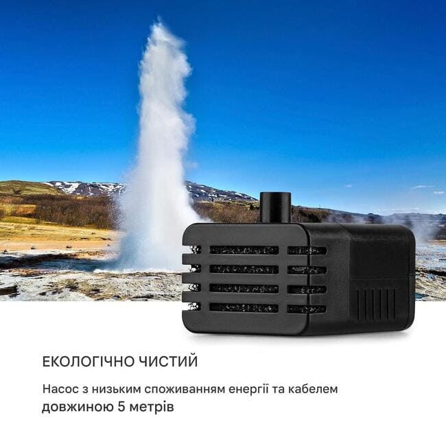 Розміри: фонтан приблизно 40 x 72 x 20 см (ШxВxГ).