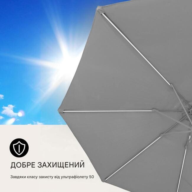 Парасолька Calais від Blumfeldt забезпечує ідеальний захист від сонячних променів вдень і поширює чудове затишне світло ввечері. Її вбудоване світлодіодне освітлення працює від сонячної панелі, яка заряджається протягом дня, роблячи вас незалежними від додаткового джерела живлення. Її велика, легко регульована парасолька забезпечує тінисте місце для шезлонгів, столів або місць для сидіння. Встановлення, натягування та вирівнювання Calais – це дитяча забавка. Щоб розкласти затінений тент, просто поверніть механічний рукоятку та відрегулюйте кут за допомогою кнопки.