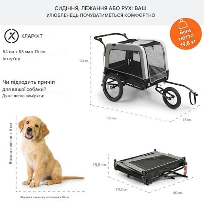 Причіп коляска для собаки Klarfit Husky Vario (10039888)
