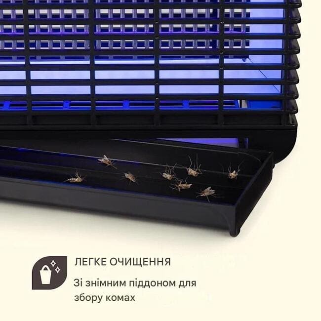 Завдяки магнітному трансформатору робота Mosquito Ex 9500 LED завжди приємна тиха, світлодіоди з технологією LongLife не потребують заміни та мають величезний термін служби 20 000 годин. Очищення також надзвичайно зручне: оскільки лоток для збору можна зняти, засіб для знищення комах можна очистити легко та зручно.