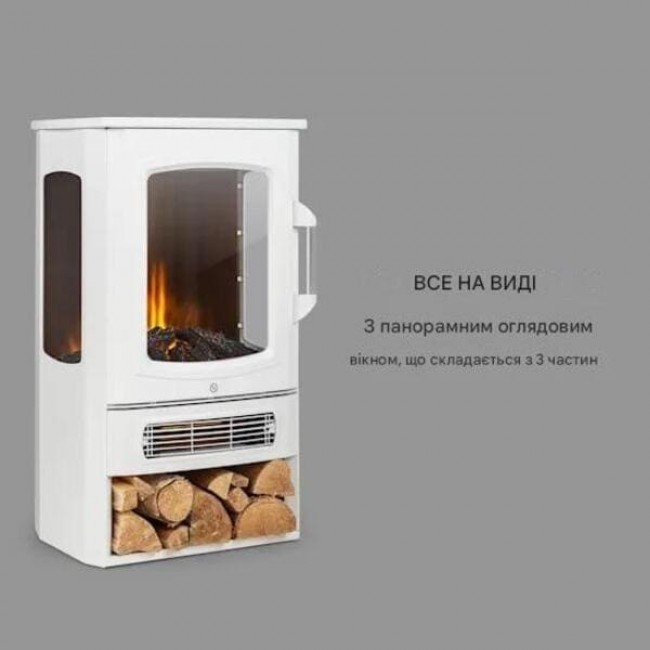 Класичний дизайн електрокаміна Klarstein вражає своєю простотою та невигадливою елегантністю. На додаток до панорамного оглядового вікна, що складається з трьох частин, особливою родзинкою є декоративне місце для зберігання полін біля основи каміна .