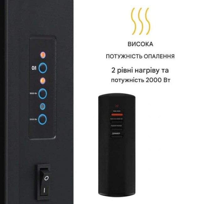 - Вибір потужності нагріву: 1000 або 2000 Вт