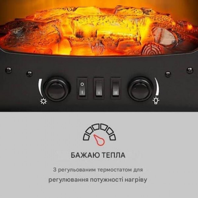 - Реалістичний: світлодіодна ілюзія полум'я зі смоляними полінами