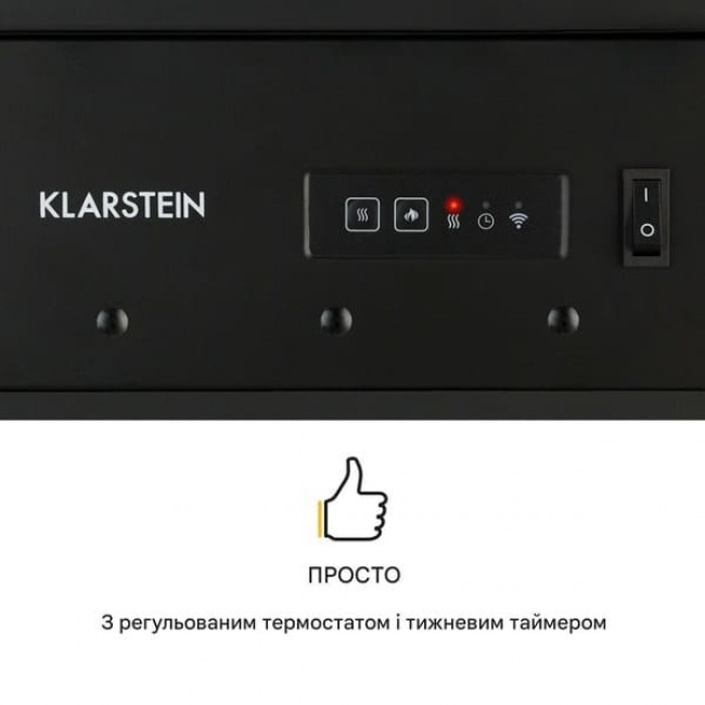 Затишна атмосфера каміна без вогню та диму: Електрокамін Bormio S Smart від Klarstein створює реалістичну ілюзію полум'я у кожній кімнаті. М'яке світло імітує справжнє полум'я і поління, що тліють, відразу створюючи затишну романтичну атмосферу. За бажанням ви можете включити обігрів, який миттєво розповсюджує тепло та працює на потужності 950 або 1900 Вт. Управління просте: крім перемикачів на самому пристрої, зручно керувати каміном за допомогою пульта дистанційного керування, який йде в комплекті. Тижневий таймер та програма Klarstein App Experience пропонують вам ще одне оновлення для простого та комфортного обігріву: легко керуйте одним або декількома нагрівачами за допомогою смартфона або планшета. Особливою особливістю є декоративне місце для зберігання дров в основі каміна. Просто, без надмірностей, але романтично: з Bormio S Smart від Klarstein почуваєшся як у каміна, що потріскує, але без вогню, кіптяви і золи. Примітка: цей продукт підходить лише для добре ізольованих приміщень або періодичного використання.